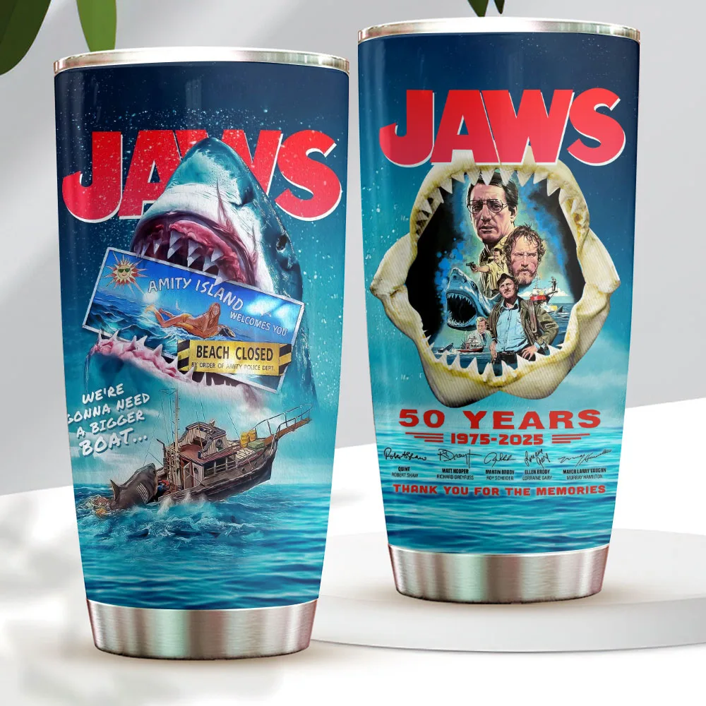 This Custom Tumbler Cup makes a perfect gift for  Jaws fans.